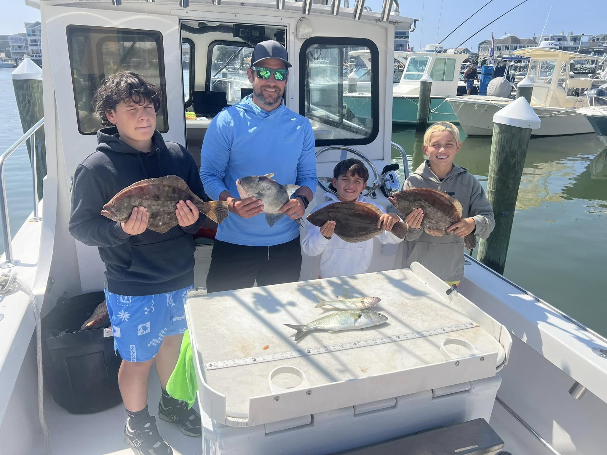 This morning, we had the Winn family out for a half-day. With the wind finally dying down, we tried our luck inshore on some wrecks. We started strong, catching a mixed bag of fish, including flounder up to 20 inches, blues, and trigger fish. We finished the trip in the bay, where we still caught a few fish. They were a great crew, and I'm looking forward to seeing them again.